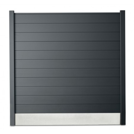 Pack met tuinscherm in aluminium en onderplaat in beton, in te metselen